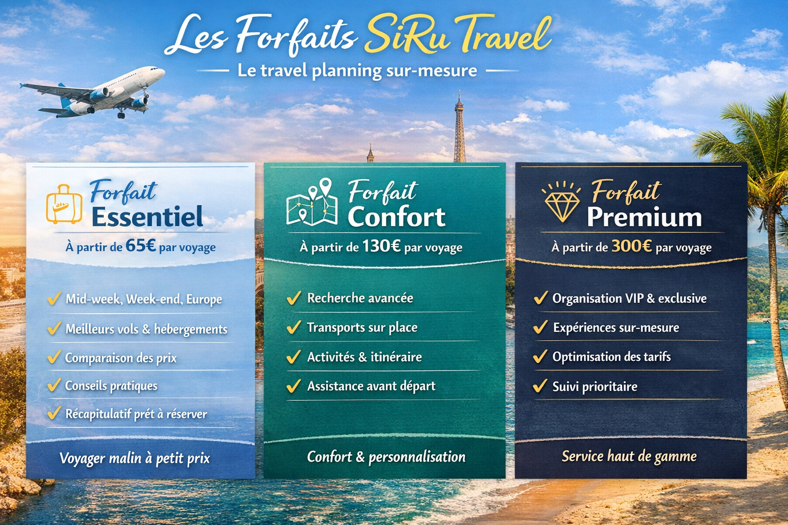 Suite à cela, SiRu Travel vous propose le forfait le plus adapté à vos besoins.